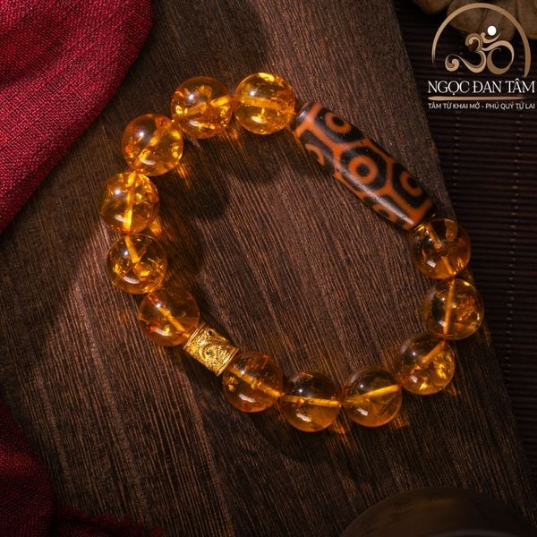 5.3 Vòng Tay Dzi Mai Rùa 9 Mắt Phối Hổ Phách Vàng