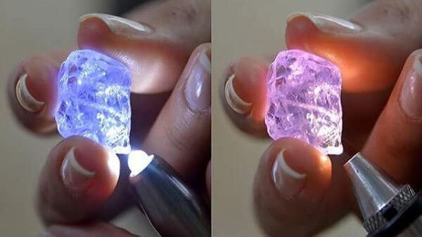 Khi rọi ánh sáng xuyên qua viên đá:
