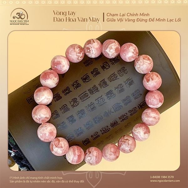 Mang sắc hồng nhẹ nhàng tựa áng mây chiều, vòng tay đá Đào Hoa Vân Mây là sự kết hợp hoàn hảo giữa vẻ đẹp mềm mại và nguồn năng lượng thu hút yêu thương. Mỗi viên đá sở hữu những đường vân tự nhiên độc đáo, tượng trưng cho sự uyển chuyển và tinh tế trong tâm hồn người phụ nữ.