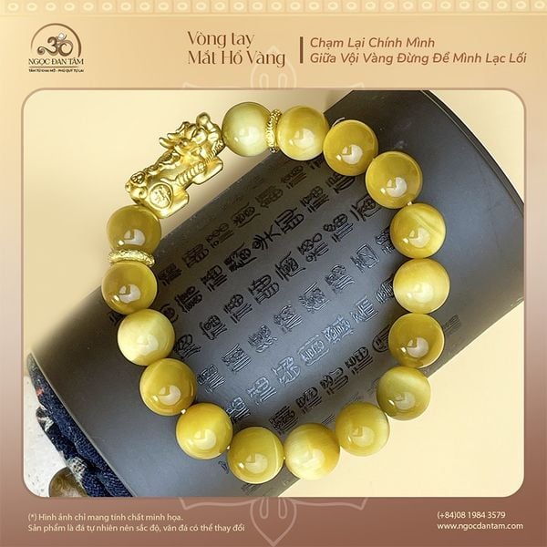 Vòng Tay Đá Mắt Hổ Vàng VIP 6A Phối Tỳ Hưu