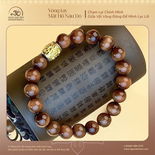 Vòng tay được chế tác từ đá Mắt Hổ Nâu Đỏ chất lượng 5A với sắc nâu ánh đỏ đặc trưng, thể hiện sự mạnh mẽ, quyết đoán và nguồn năng lượng nội tại vững vàng. Khi ánh sáng chiếu vào, từng hạt đá lấp lánh như đôi mắt hổ đang chuyển động, mang đến cảm giác uy lực và phong thái tự tin cho người đeo.