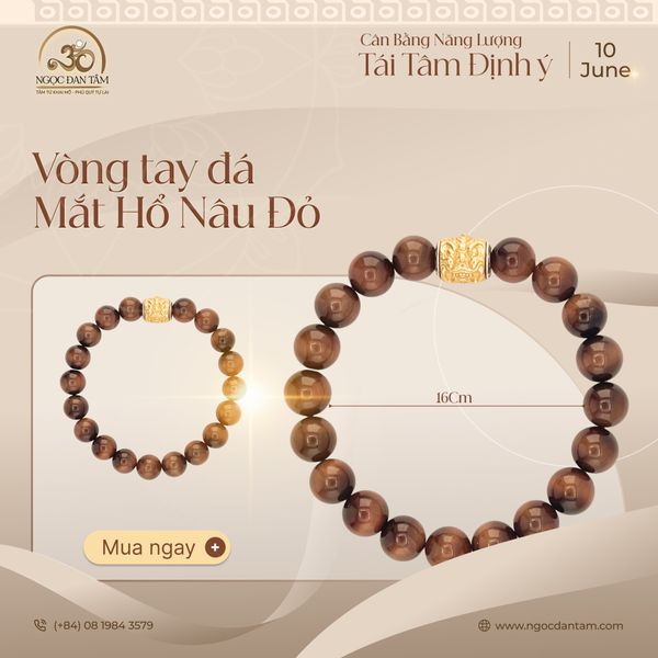 3.5 Vòng tay đá Mắt Hổ Nâu Đỏ - Ngọc Đan Tâm