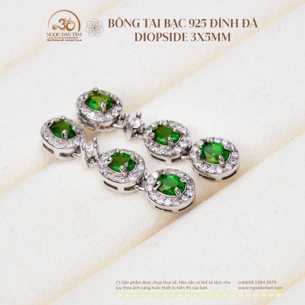Bông Tai Bạc 925 Đính Đá Diopside 3x5mm