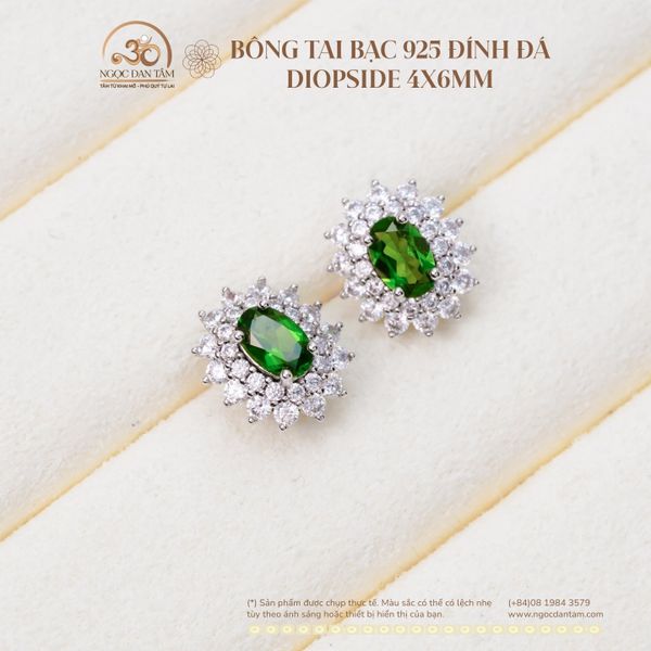 Bông Tai Bạc 925 Đính Đá Diopside 4x6mm