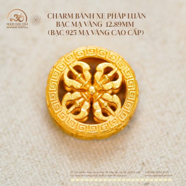 Charm Bánh Xe Pháp Luân Bạc Mạ Vàng 12.89mm (bạc 925 mạ vàng cao cấp)