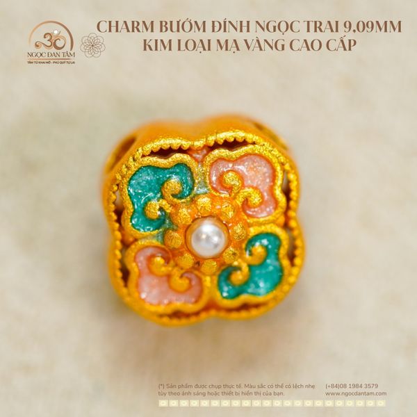 Charm Bướm Đính Ngọc Trai 9,08mm - Kim Loại Mạ Vàng Cao Cấp