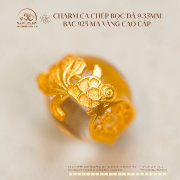 Charm Cá Chép Bọc Đá 9.35mm Bạc 925 Mạ Vàng Cao Cấp