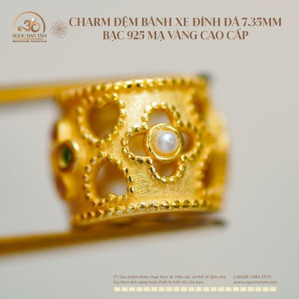 Charm Đệm Bánh Xe Đính Đá 7.35mm - Bạc 925 Mạ Vàng Cao Cấp