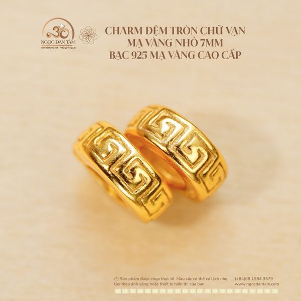 Charm Đệm Tròn Chữ Vạn Nhỏ 7mm - Bạc 925 Mạ Vàng Cao Cấp