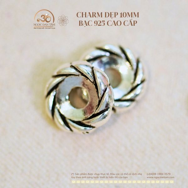 Charm Dẹp 10mm - Bạc 925 Cao Cấp