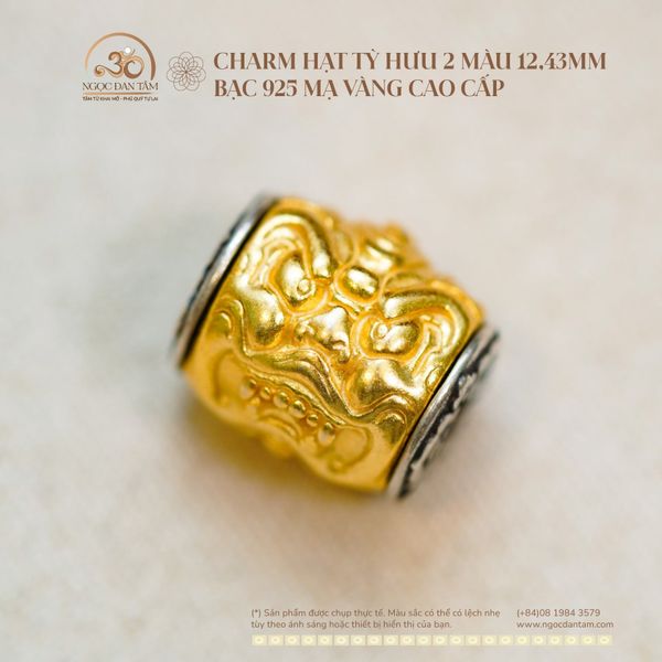 Charm Hạt Tỳ Hưu 2 Màu 12,43mm - Bạc 925 Mạ Vàng Cao Cấp