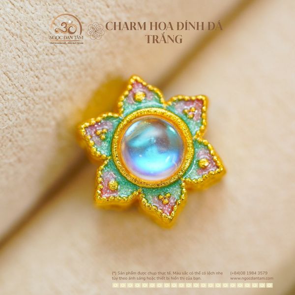 Charm Hoa Đính Đá Trắng 10,91mm - Kim Loại Mạ Vàng Cao Cấp