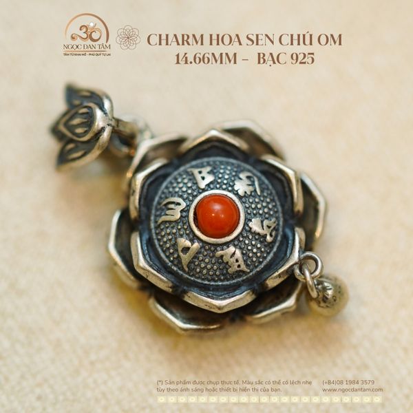 Charm Hoa Sen Chú Om 14.7mm - Bạc 925 Cao Cấp
