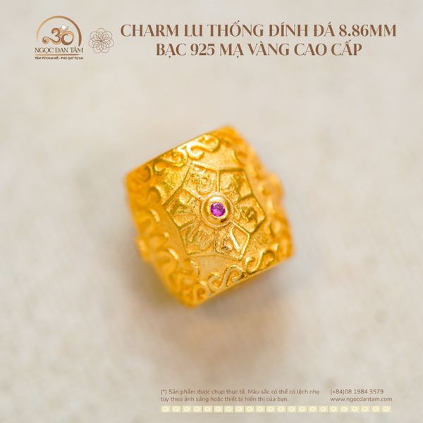 Charm Lu Thống Đính Đá 8.86mm - Bạc 925 Mạ Vàng Cao Cấp
