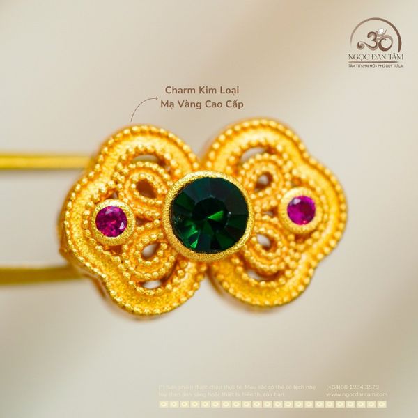 Charm Nơ Đính Ngọc Lục Bảo 17,5mm - Kim Loại Mạ Vàng Cao Cấp