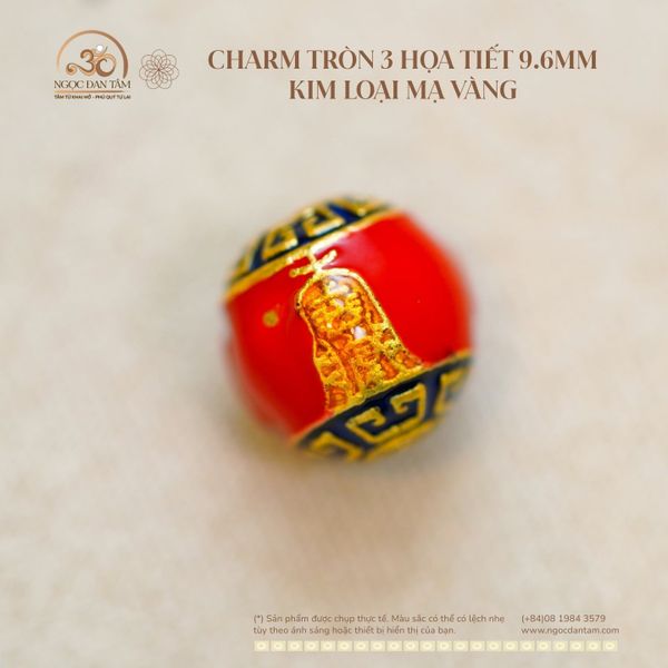 Charm Tròn 3 Họa Tiết 9.6mm - Kim Loại Mạ Vàng