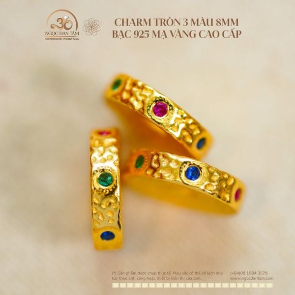 Charm Tròn 3 Màu 8mm Bạc 925 - Mạ Vàng Cao Cấp