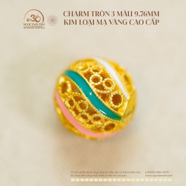 Charm Tròn 3 Màu 9.76mm - Kim Loại Mạ Vàng Cao Cấp
