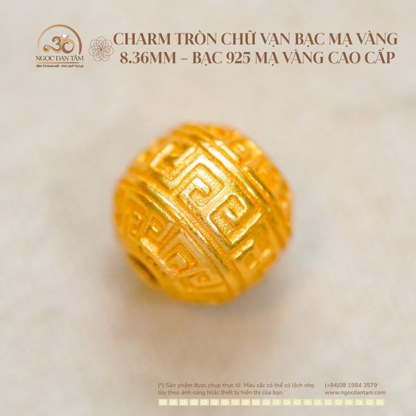Charm Tròn Chữ Vạn Bạc Mạ Vàng 8.36mm - Bạc 925 mạ vàng cao cấp