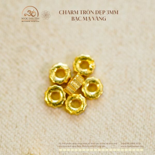 Charm Tròn Dẹp 3mm - Bạc Mạ Vàng