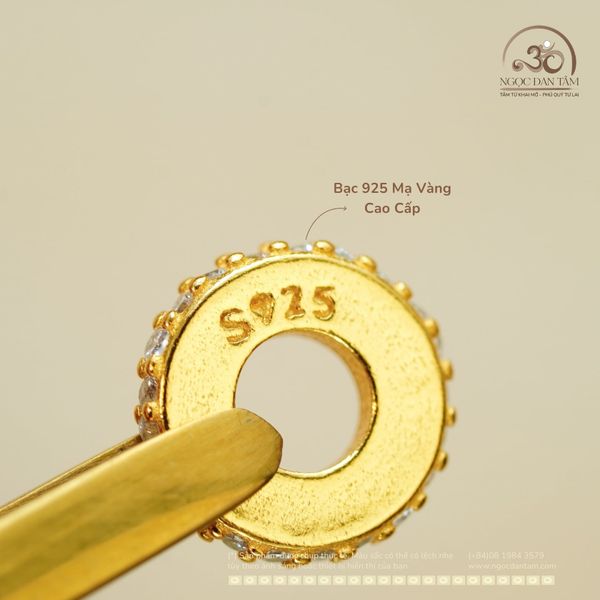 Charm Tròn Dẹp Đính Đá Lớn 8.46mm - Bạc 925 Mạ Vàng Cao Cấp