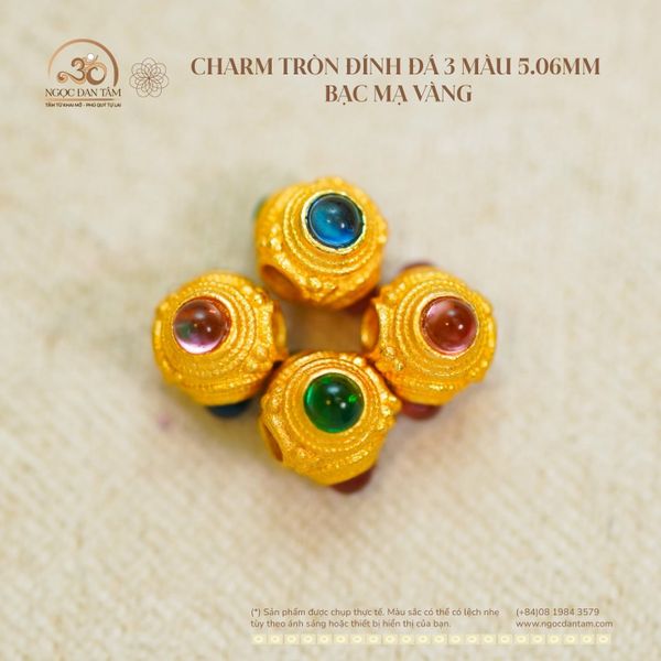 Charm Tròn Đính Đá 3 màu 5.06mm - Bạc Mạ Vàng