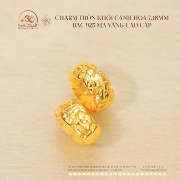 Charm Tròn Khối Cánh Hoa 7.18mm - Bạc 925 Mạ Vàng Cao Cấp