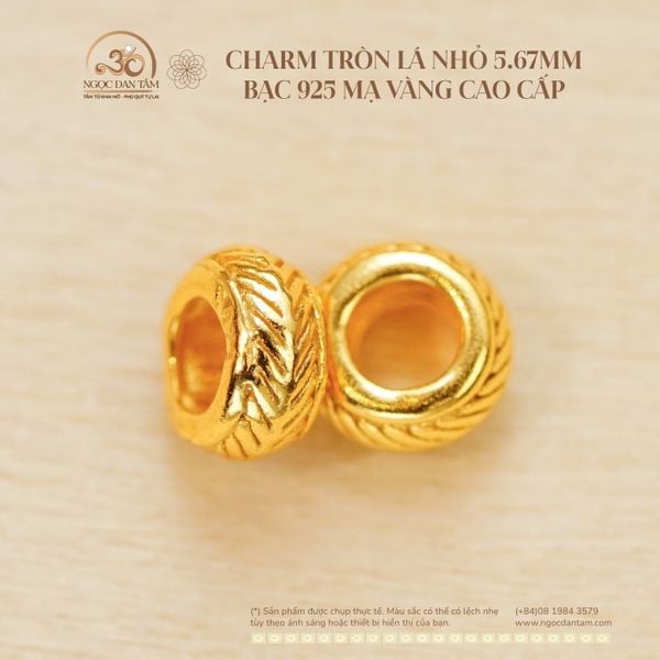 Charm Tròn Lá Lớn 5.67mm - Bạc 925 Mạ Vàng Cao Cấp