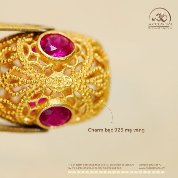 Charm Trụ Ren Đính Đá Đỏ - Bạc 925 Mạ Vàng Cao Cấp