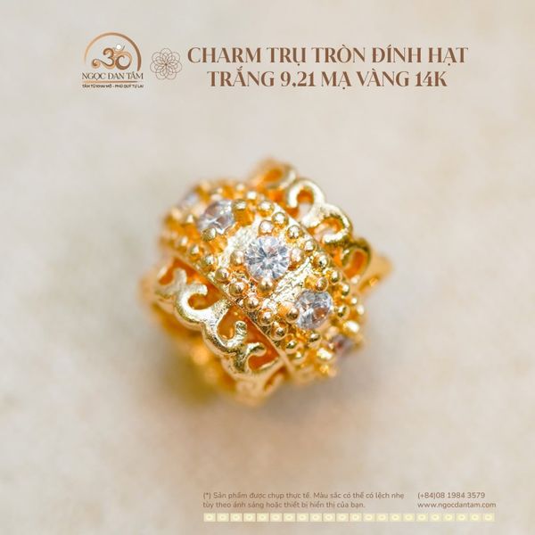 Charm Trụ Tròn Đính Hạt Trắng 9,21mm - Kim Loại Mạ Vàng 14K