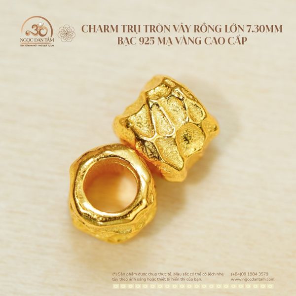 Charm Trụ Tròn Vảy Rồng Lớn 7.30mm - Bạc 925 Mạ Vàng Cao Cấp