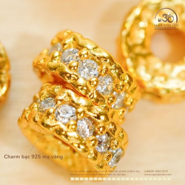 Charm Vảy Rồng Dẹp Đính Đá Trắng - Bạc 925 Mạ Vàng Cao Cấp
