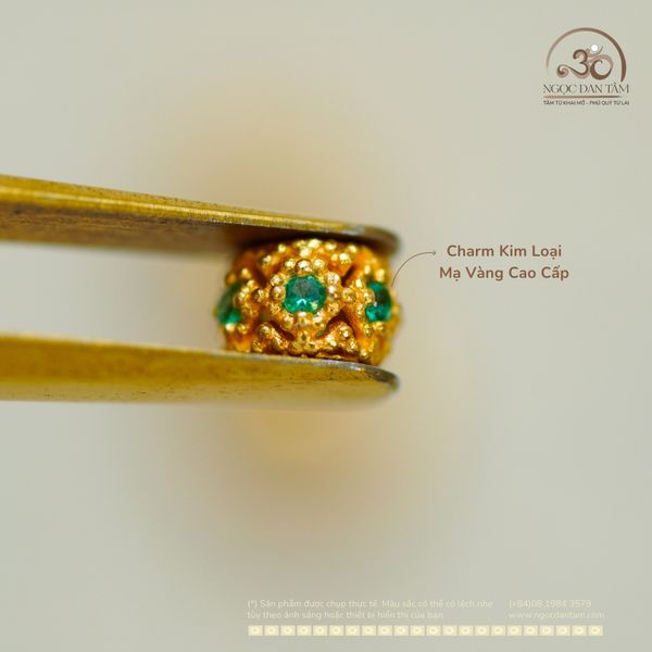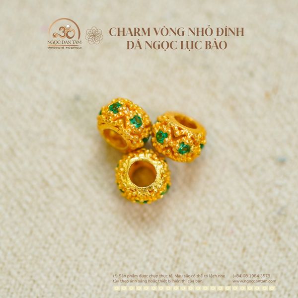 Charm Vòng Nhỏ Đính Đá Ngọc Lục Bảo 4,59mm - Kim Loại Mạ Vàng Cao Cấp