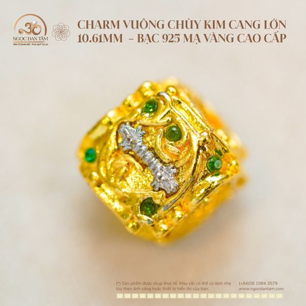 Charm Vuông Chùy Kim Cang Lớn 10.61mm - Bạc 925 Mạ vàng Cao Cấp