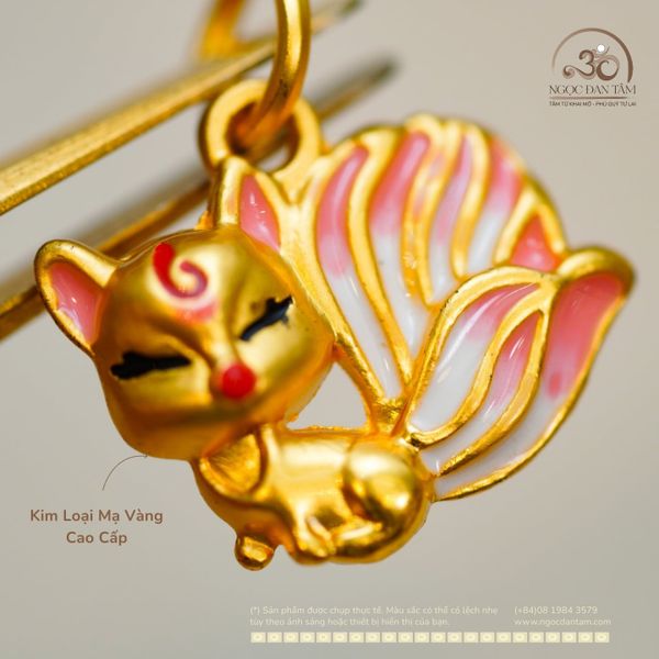 Charm Treo Cửu Vĩ Hồ 13,87mm - Kim Loại Mạ Vàng Cao Cấp