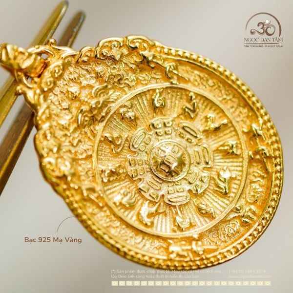 Mặt Dây Chuyền Văn Thù Cửu Cung Bát Quái 12 Cung Hoàng Đạo 17,44mm - Bạc 925 Mạ Vàng Cao Cấp