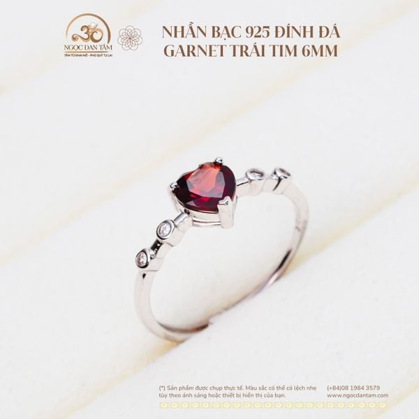 Nhẫn Bạc 925 Đính Đá Garnet Trái Tim 6mm