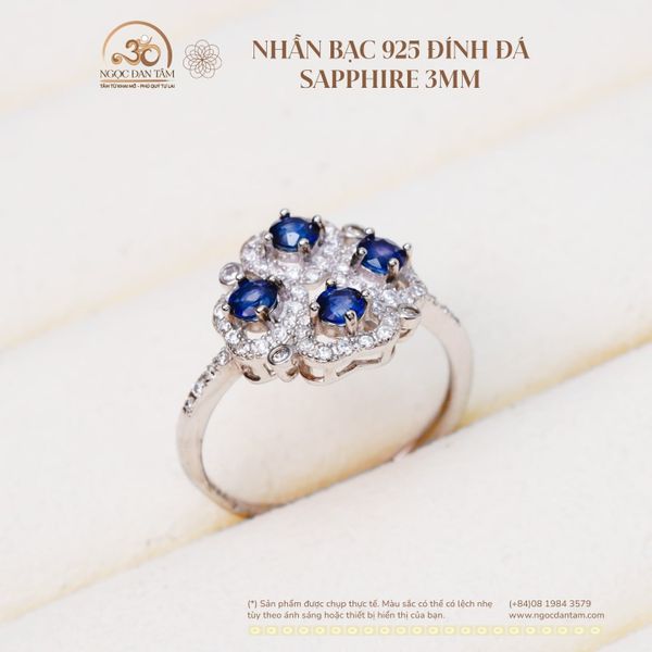 Nhẫn Bạc 925 Đính Đá Sapphire 3mm