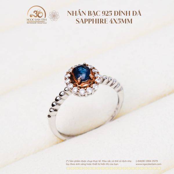 Nhẫn Bạc 925 Đính Đá Sapphire 4x5mm