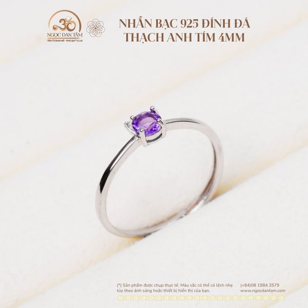 Nhẫn Bạc 925 Đính Đá Thạch Anh Tím 4mm