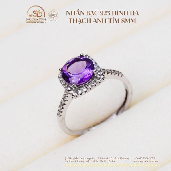 Nhẫn Bạc 925 Đính Đá Thạch Anh Tím 8mm