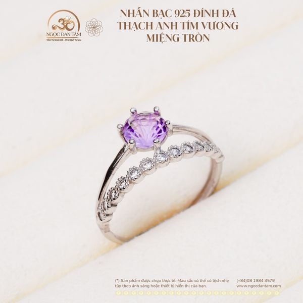 Nhẫn Bạc 925 Đính Đá Thạch Anh Tím Vuông Miệng Tròn