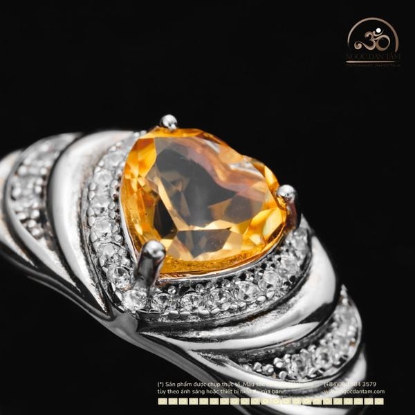 Nhẫn Bạc 925 Đính Đá Thạch Anh Vàng 7mm