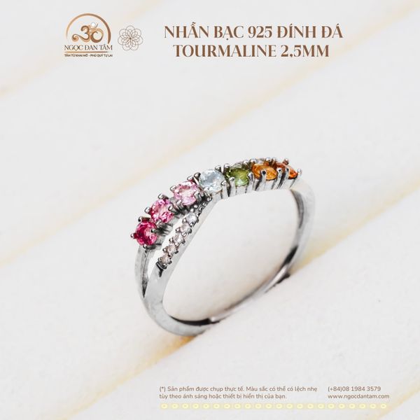 Nhẫn Bạc 925 Đính Đá Tourmaline 2.5mm