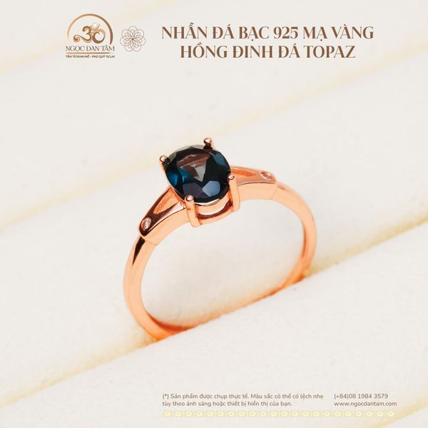 Nhẫn Bạc 925 Mạ Vàng Hồng Đính Đá Topaz