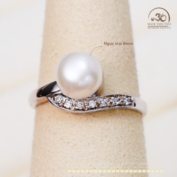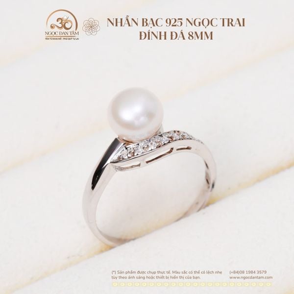 Nhẫn Bạc 925 Ngọc Trai 8mm Đính Đá