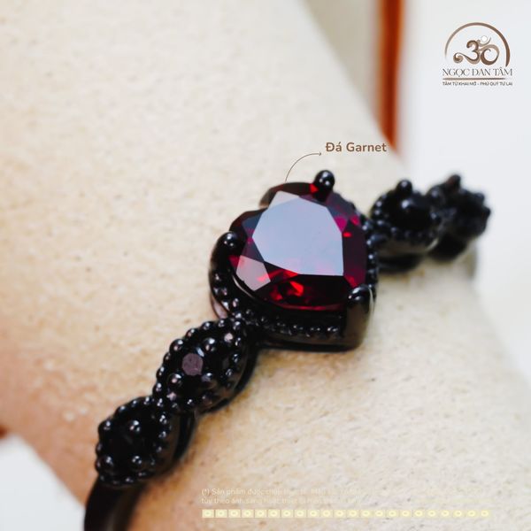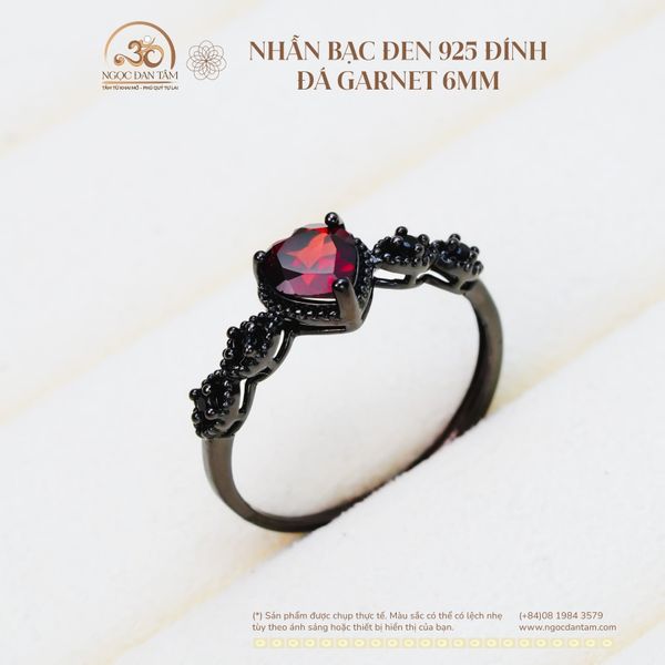 Nhẫn Bạc Đen 925 Đính Đá Garnet 6mm
