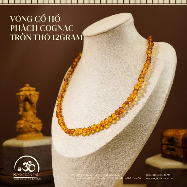 Vòng Cổ Hổ Phách Cognac Tròn Thô 12gram