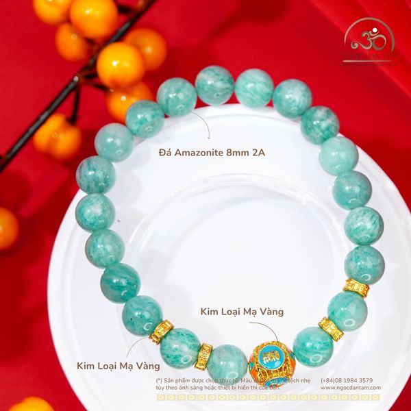 Vòng Tay Amazonite 8mm 2A Phối Charm Bình An