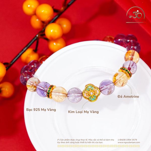Vòng Tay Ametrine 8mm 2A Phối Charm Bướm Ren Đính Ngọc Trai